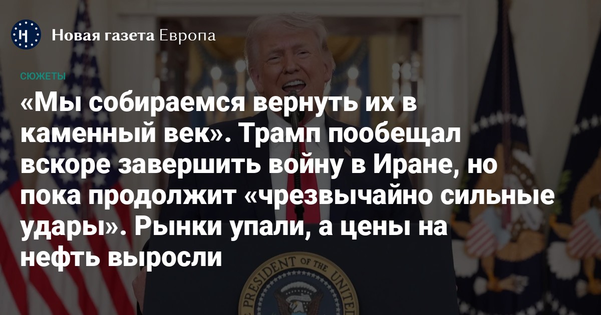 Вечером 1 апреля (в ночь на четверг по европейскому времени) Трамп дал понять согражданам: продолжающаяся с 28 февраля война США и Израиля с Ираном скоро должна завершиться. По его словам, «основные стратегические задачи близки к выполнению». Но уменьшать давление Вашингтон пока не намерен. «Мы собираемся в течение следующих двух-трех недель нанести по ним [Ирану. — Прим. ред.] чрезвычайно сильные удары. Мы собираемся вернуть их в каменный век, где им самое место», — сказал глава Белого дома, также пригрозив «очень сильным ударом» по энергетической системе страны, если ее руководство не согласится на сделку на условиях Вашингтона.