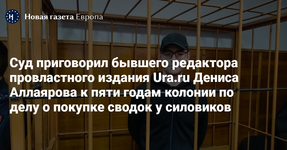Верх-Исетский районный суд Екатеринбурга приговорил к пяти годам колонии бывшего редактора Ura.ru Дениса Аллаярова по делу о даче взятки (ч. 3 ст. 291 УК), пишет «Медиазона».
